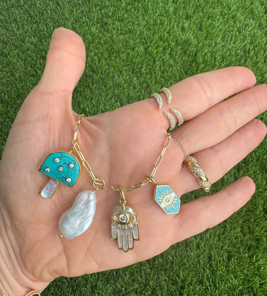 Each Baroque Pearl Charm is a one-of-a-kind treasure, bursting with unique shapes and natural character. This playful pendant adds a splash of whimsy to any chain, whether worn solo or stacked in a fun layered necklace look.