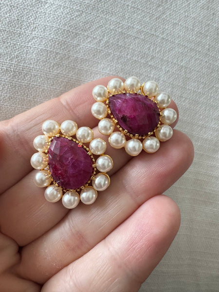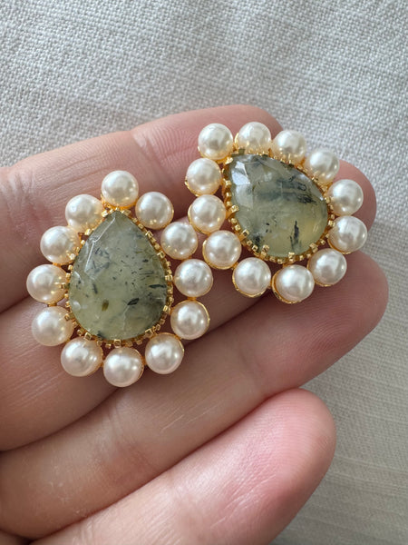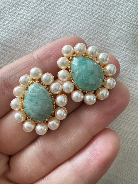 Handmade in Turkey and totally unique, these stunning natural stone teardrop studs are absolutely stunning with their pearl trim. We will take one of each please!