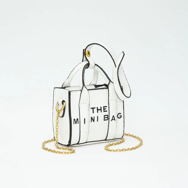 Get ready to take on the day with the perfect mini tote bag/crossbody with a crossbody chain strap. With its playful "the mini bag" print, you'll turn heads while staying organized and fully equipped for any adventure. Get yours now and add some fun to your wardrobe!